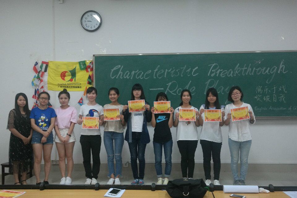 “性格突破”活动 发布时间:2017-10-13 09:48:40 浏览次数: 次 【字体:小 大】 “性格突破”活动介绍 “性格突破”活动,是由英语协会CMB电台举办的以“愈乐于戏,突破自我”为主旨的外语角色扮演活动,让同学们在角色扮演中,既能享受表演带来的乐趣,也能在提高对英语的掌握。 角色扮演之戏剧——《灰姑娘》 现场视频配音 活动结束后颁奖 分享到: 【打印正文】