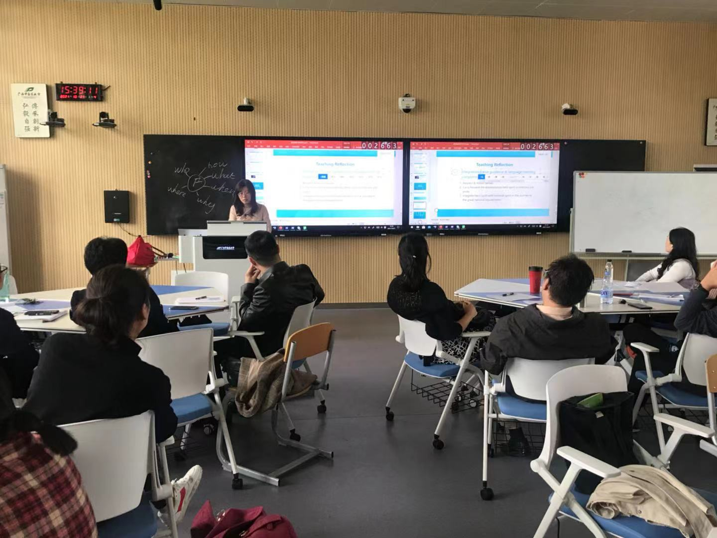 专业英语教研室张艳博士教学基本功参赛示范课观摩活动 发布时间:2021-10-22 11:10:32 浏览次数: 次 【字体:小 大】 10月22日下午,外语部专业英语教研室全体成员在部门领导的组织和带领下在教学楼智慧教室参加了本教研室成员张艳老师的教学基本功参赛示范课观摩活动,为张艳老师参加第六届全国高等院校英语教师教学基本功大赛进行赛前的同行评议。大家认真参与张艳老师的说课活动,针对张艳老师在说课过程中存在的一些不足提出了各种意见和建议,外语部主任陈立群肯定了此次教学观摩活动的重要性,建议张艳老师积极听取大家的意见和建议,争取在比赛中有更好的表现,赛出好成绩。 分享到: 【打印正文】