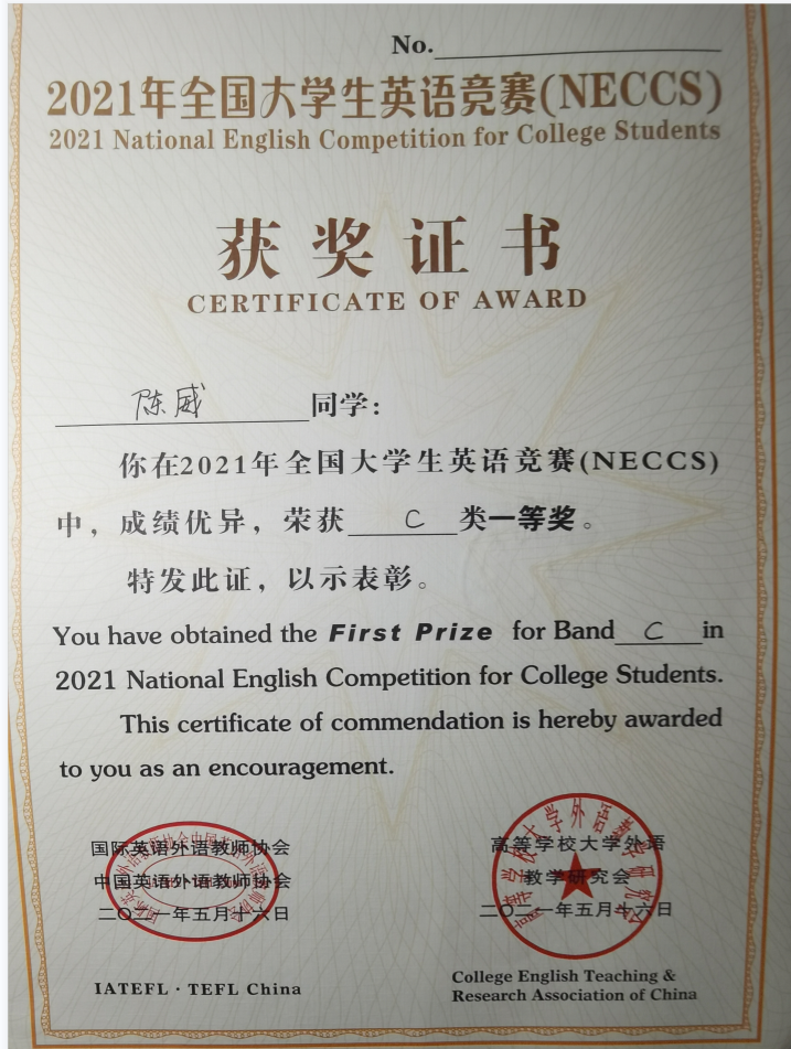 beat365官网学生在2021年全国大学生英语竞赛中喜获佳绩