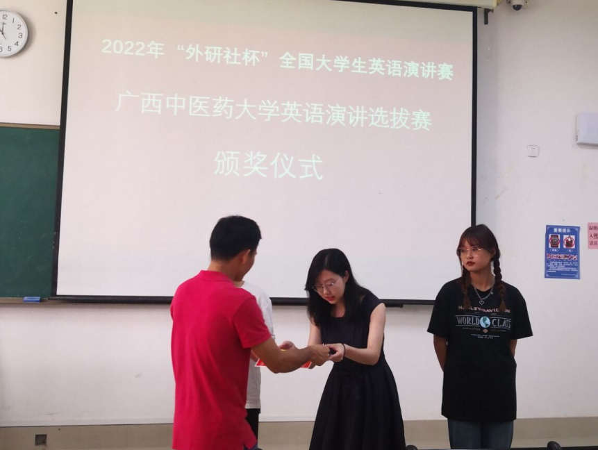 经过初赛和复赛的层层角逐,来自基础医学院2021级中医学5+3班杨棋妃脱颖而出,获得一等奖。二等奖分别由何菁菁、朱紫璇、李泽垚获得。三等奖获得者是杨春玲、谢海容、谢盈、彭子倩、岑双儿、廖准。外语部将组织获奖选手参加专门集训,优秀选手将代表beat365正版唯一入口必一出战广西赛区决赛,争夺更高荣誉。