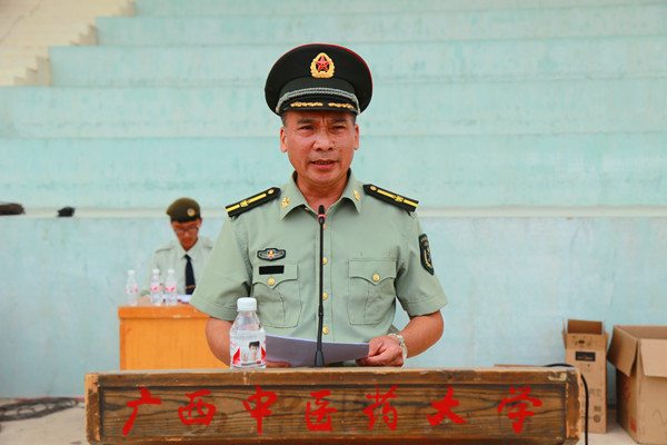 表演结束后,广西军区教导大队杨丁中校向同学们圆满完成本次军训任务表示祝贺,对同学们英姿飒爽、朝气蓬勃的表演表示欣慰,对同学们在本次军训中的汗水与辛劳表示认可,并希望同学们将本次军训的成果延续到今后的学习生活中。