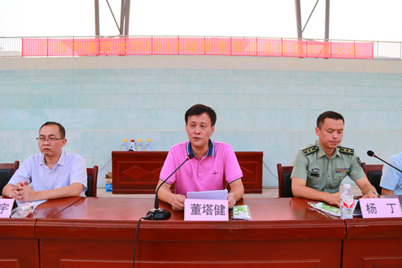 董塔健副书记对本次军训工作进行了总结讲话。他首先代表学校向承训部队领导、全体教官的辛勤付出表示诚挚的感谢,并祝贺同学们在军训生活里所取得的优异成绩,肯定了同学们在教官带领下发扬艰苦奋斗的革命精神,高质量地完成了本次军训。通过本次军训,让同学们感受到了军人的风采,强化了国防意识,增强了爱国热情;有意义的军训生活,揭开了同学们大学生活的序幕,开启了同学们新的里程,开始了新一轮的拼搏,希望同学们能将本次军训中所养成的优良的作风、严格的纪律、规范的行为、快速的反应能力和团结协作的集体精神保持下去,在今后的学习生涯中追求理想,攀登高峰,谱写出更加绚丽的人生篇章。