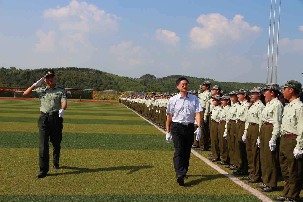9月21日下午,beat365正版唯一入口必一2018级新生军训汇演暨总结大会在仙葫校区运动场举行。学校副书记何并文、31639部队欧银光少校、防城边防某部王敏上尉及相关部门负责人出席了大会。