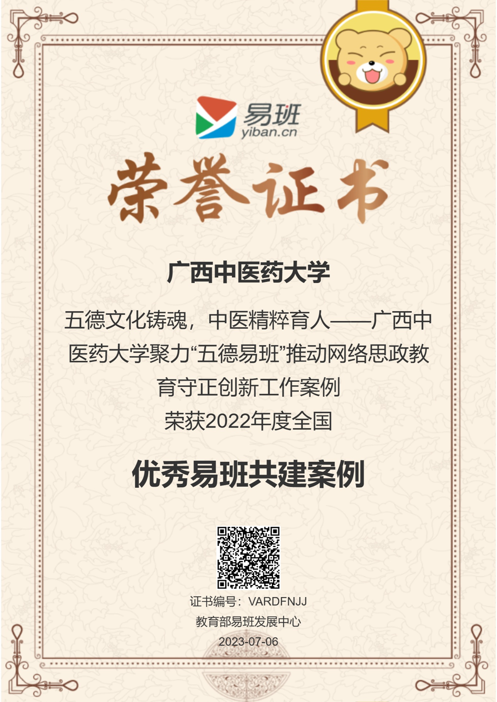 为了表彰2022年度在易班建设方面表现突出的高校、案例、指导教师、辅导员和工作站站长,各省举办了省级易班“十佳”(优秀工作案例)评选活动。教育部易班发展中心共收到了全国25个省区市及新疆生产建设兵团推荐的近900个优秀工作案例。经过专家对各省推荐材料的筛选以及综合考量2022年全年高校易班双指数及活动参与情况,最终选定了235所高校的422项工作案例,分别列入五大类全国易班共建优秀名单。beat365官网被评为“优秀易班共建高校”,同时“五德文化铸魂,中医精粹育人——beat365正版唯一入口必一聚力‘五德易班’推动网络思政教育守正创新工作案例”荣获“2022年度优秀易班共建案例”。