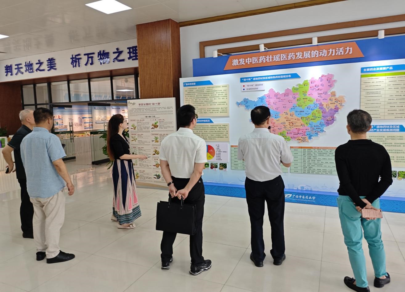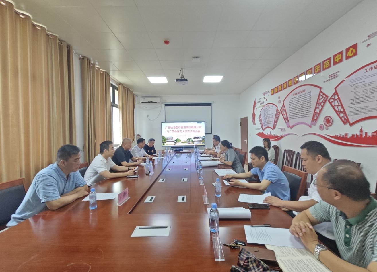 广西桂海医疗管理集团有限公司一行还参观了学校中医药壮瑶医药研究院。 调研座谈会  调研座谈会参观中医药壮瑶医药研究院