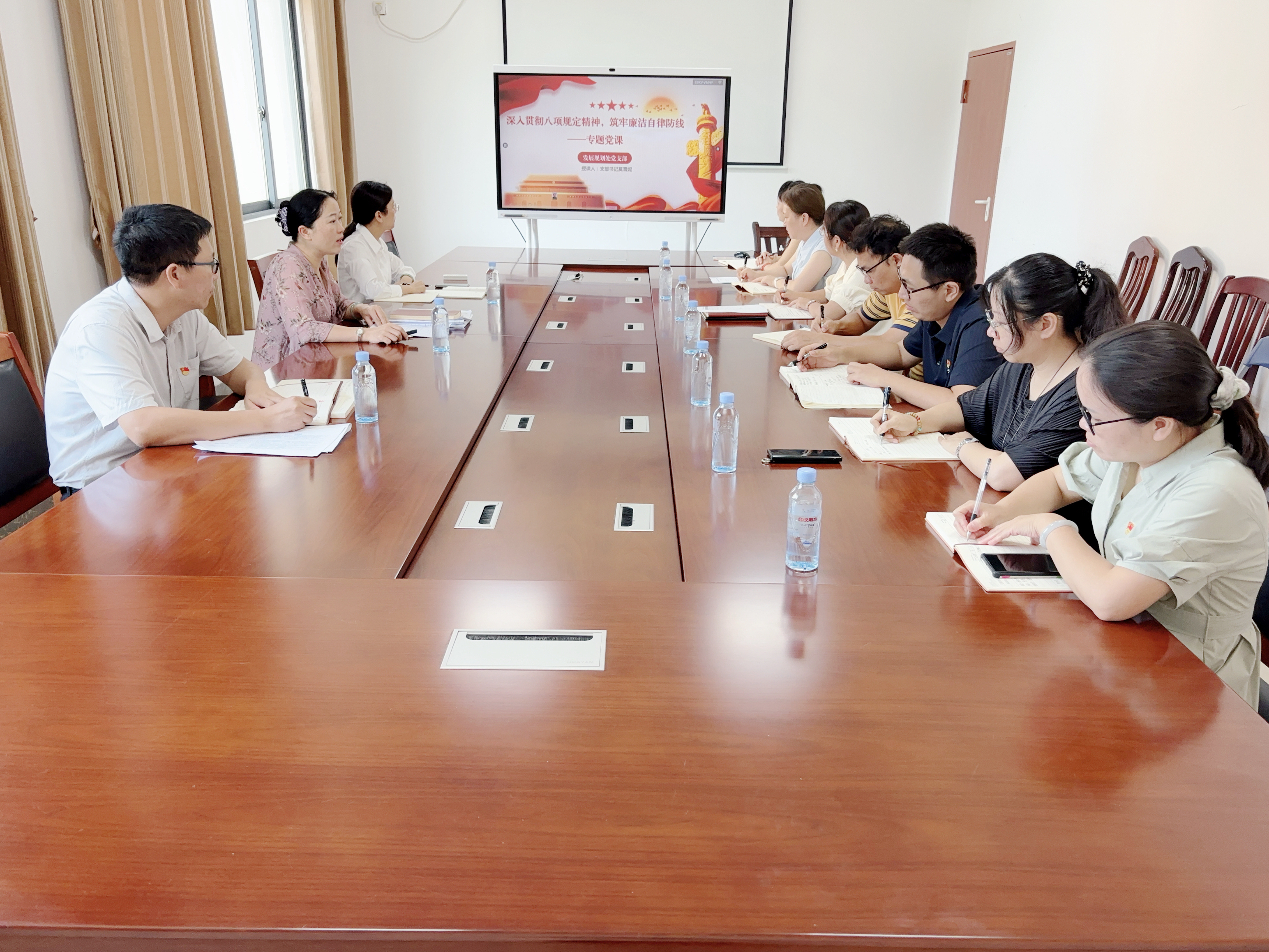 6月17日,发展规划处党支部在仙葫校区合德楼333会议室召开党员大会暨八项规定精神专题党课活动,发展规划处全体同志参加。