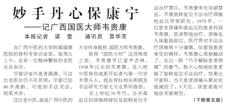 【广西日报-八桂先进人物】妙手丹心保康宁——记广西国医大师韦贵康