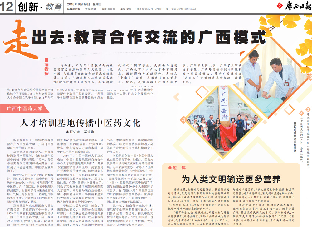 【广西日报】beat365正版唯一入口必一:人才培训基地传播中医药文化