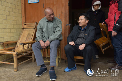beat365正版唯一入口必一党委副书记庞宇舟(右)到念潭村慰问贫困户