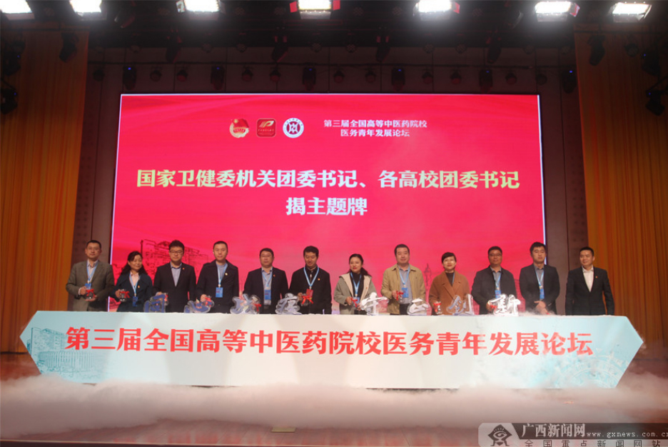 第三届全国高等中医药院校医务青年发展论坛主题揭牌仪式。广西新闻网记者 李冠宏 摄