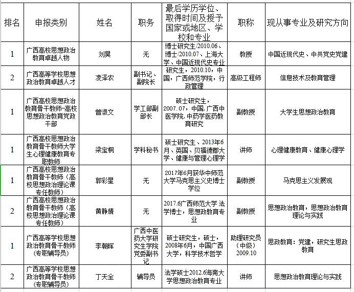 附件:第二批“广西高校思想政治教育杰出人才支持计划”推荐人选汇总表