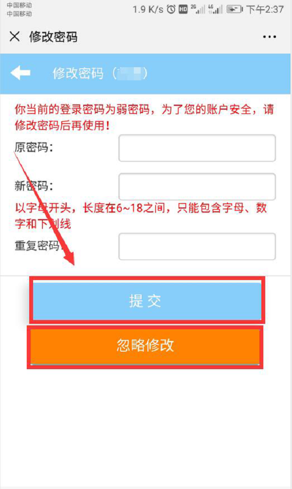 (4)登录后,可以选择修改登录密码,或者忽略修改,如下图: