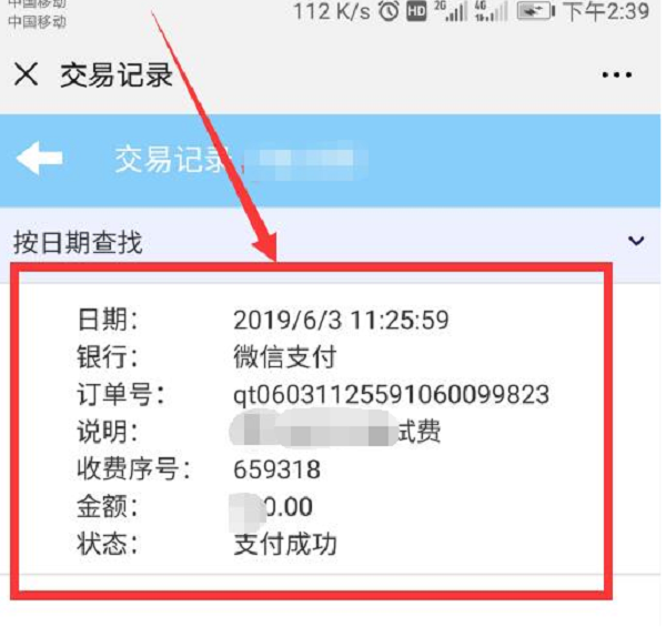 (2)支付完成后,在“交易记录”页面内即可看到缴费是否成功。