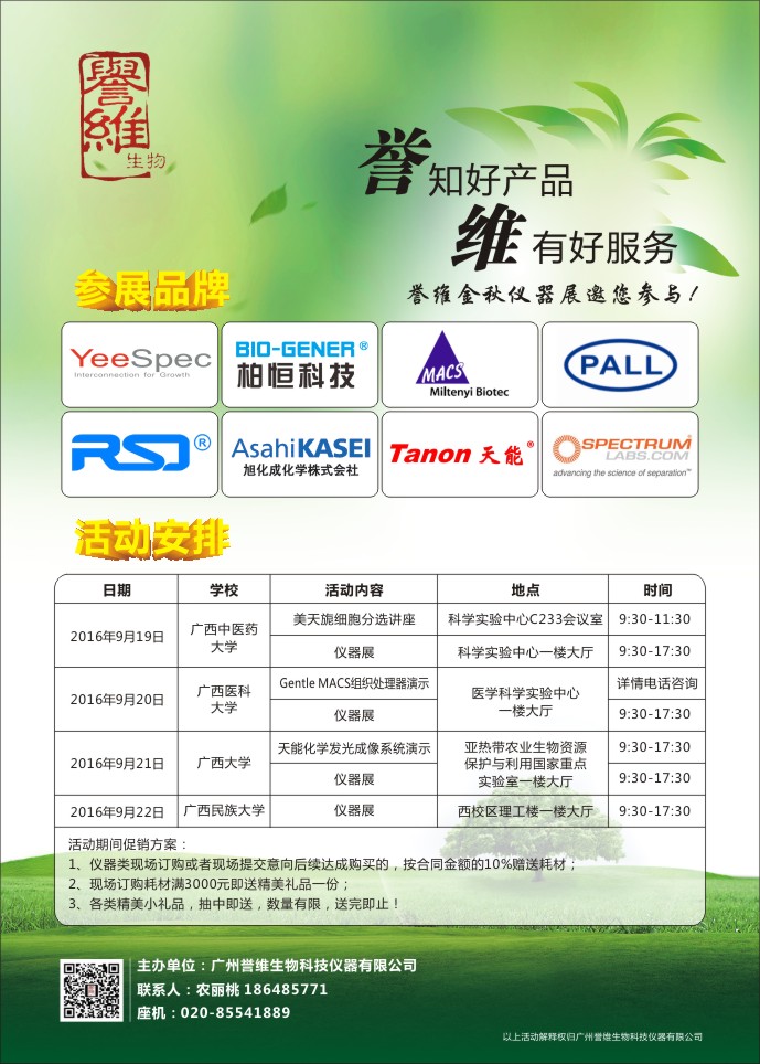 关于广西中医药科学实验中心“美天旎组织处理器”相关培训的通知 日期:2016-09-09 点击数: 次 分享到: 时间:2016年9月19日星期一 上午9:30 地点:beat365正版唯一入口必一(仙葫校区)科学实验中心会议室C233 内容:1.gentelMACS组织处理器的现场操作演示及仪器操作规程讲解 2.相关讲座 3.美天旎仪器展示 请各位感兴趣的老师、同学踊跃参加! 打印正文 关闭本页