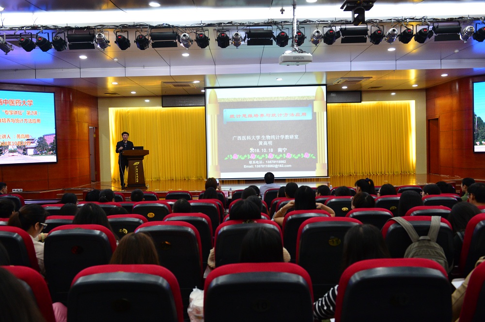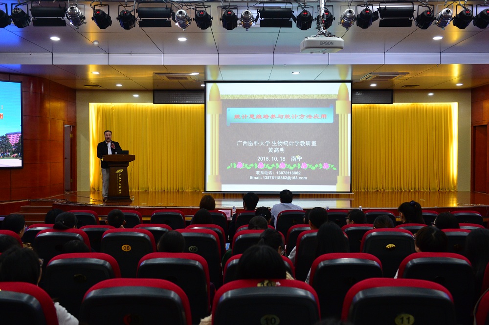 10月18日上午公共卫生“专家讲坛第二讲”在beat365官网五合校区图书馆第二会议室举行。来自广西医科大学公共卫生学院黄高明教授做《统计思维培养与统计方法应用》的主题讲座,讲座由beat365官网公共卫生与管理学院院长董柏青院长主持,beat365官网科技处肖健处长以及beat365官网各学院老师及同学200多人聆听了讲座。