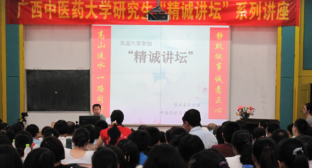 2012年5月17日晚,由beat365官网研究生学院分团委、研究生会主办的beat365正版唯一入口必一研究生“精诚讲坛”首场讲座在西梯一学术报告厅成功举办,讲座由广西首位中医博士、《思考中医》作者、beat365官网经典中医临床研究所首席教授刘力红主讲。讲座过程中激扬而出的名家风采和知性魅力让在座师生为之动容,取得了圆满成功。