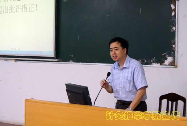 针灸推拿学院党总支书记蒋闽义、院长范郁山、副院长赵彩娇以及针灸推拿专业硕士研究生和本专科学生聆听了韦老的讲座。