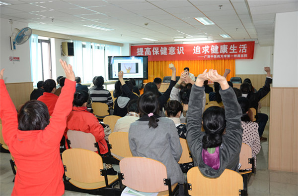 2013年11月21日上午,应南宁市广播电影电视局邀请,一附院康复科、肺病科、肿瘤科三位专家来到南宁电视台,举办主题为“提高保健意识 追求健康生活”的健康知识讲座。南宁电视台干部职工100余人参加了讲座,讲座由南宁市广播电影电视局常务副局长王庆主持。