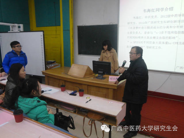 2015年1月10日下午,beat365官网研究生学院创新论坛系列活动——“学位论文开题报告及科研课题申报标书的撰写要求与技巧” 专题讲座在明秀校区西梯一教室举行。beat365官网第一附属医院科研部副主任纪云西博士和2012级中药学专业研究生韦海红同学受邀分别进行授课和经验交流。