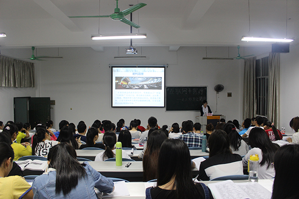 11月为beat365官网科技文化活动月,为彰显瑞康临床医学院在科技文化活动中的特色,紧跟时代步伐,深入领会李克强总理提出的“互联网+”行动计划精神,同时调动学院同学参加第二课堂的积极性,2015年11月22日晚,瑞康临床医学院团总支、学生会在明秀校区西A—8教室成功举办“互联网+医疗”学术讲座。瑞康临床医学院信息宣传部夏哲璇老师为主讲人,学院近200名学生积极参加本次讲座。