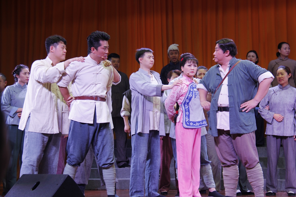 最后,歌剧《小二黑结婚》将晚会引向高潮。讲的是抗战时期小二黑与小芹历经磨难难终成眷属的故事。演员们的精湛演绎,充分凸显了歌剧细腻有神。剧中的经典唱段《清粼粼的水蓝莹莹的天》是杨兰春先生根据家乡地方戏曲平调落子的精华旋律创作而来的歌剧,明快而富青春气息的音乐展示了剧中主人公小芹纯朴的性格,把她思念恋人的急切心情和对爱情的憧憬表现得惟妙惟肖。而其中充满生活气息的语言,诙谐幽默,让现场气氛活泼,笑声不断。
