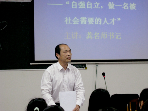 龚名师书记在作题为“自强自立、做一名社会需要的人才”的讲座