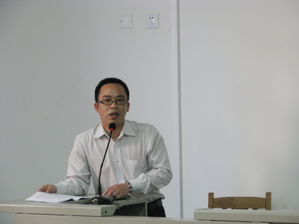 广西中医学院学工处处长冼锦华就《新形势下如何做好辅导员工作》对赛院辅导员进行培训