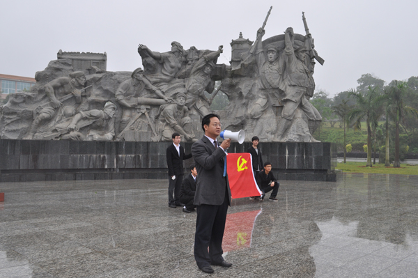 来到庄严肃穆的“邓小平领导百色龙州起义”纪念碑前,仿佛回到了几十年前硝烟滚滚的战场,党员同志们感受着今日幸福生活的来之不易。徐书记发表动员讲话,他表示,党员同志们要学习先驱们百折不挠、坚贞不屈、艰苦拼搏的精神,要怀爱国之心,立爱国之志,不断的提高个人综合素质,做一名合格的共产党员,为赛恩斯新医药学院的发展献计献策,为中医药事业的发展注入新的活力,为国家的发展贡献力量。