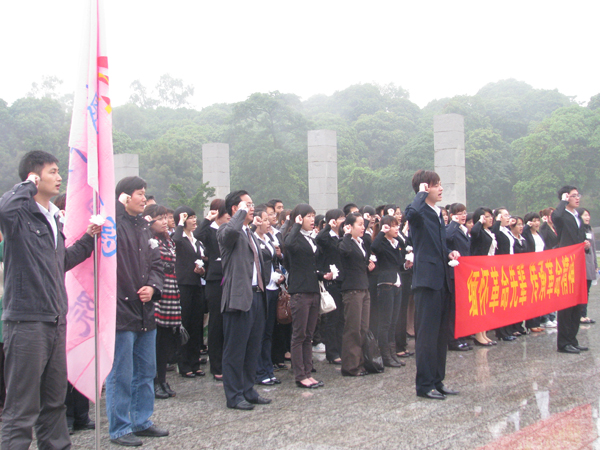 4月18日上午,赛恩斯新医药学院党总支书记徐方明、副书记梁天坚带领全院教职工党员、第三、四、五党支部学生党员、分团委及学生会委员,冒着朦朦细雨,怀着对革命先烈崇高的敬意来到广西烈士陵园,深切缅怀革命先烈。