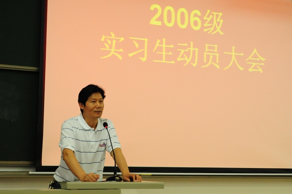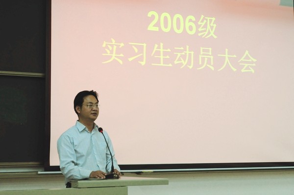 4月21日晚上,赛恩斯新医药学院2005级中医对外专业和2006级医护专业实习生动员大会在203阶梯教室举行。赛恩斯新医药学院党总支徐方明书记、梁天坚副院长、学工部叶绘晟主任、实习管理科黄学政老师以及05、06级各班辅导员出席了本次动员大会。