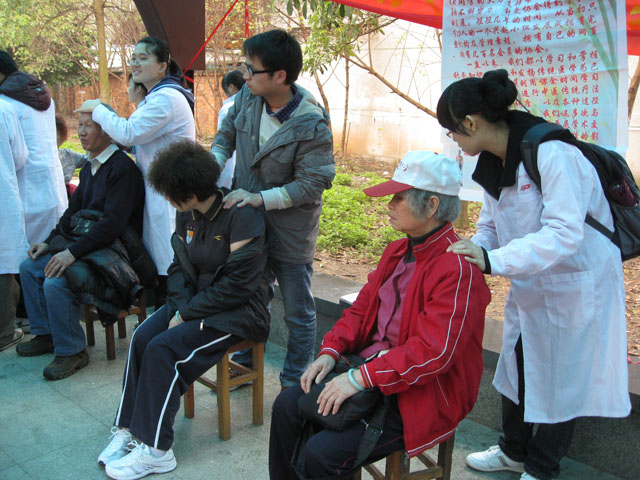 为进一步弘扬雷锋精神,促进党建带团建工作,推进创先争优活动,2011年3月20日,基础医学院学生第二党支部联合beat365官网针灸协会在南宁市衡阳花园举行了以“为人民服务”为主题的义诊活动。