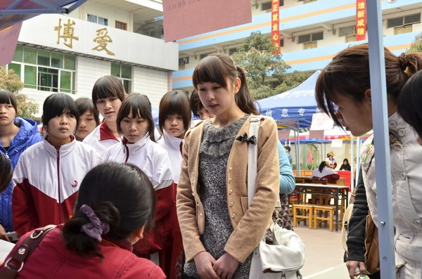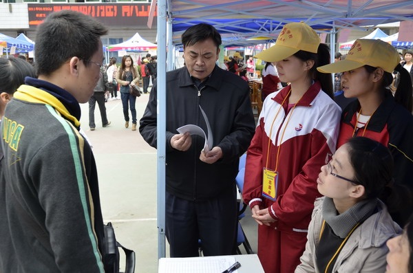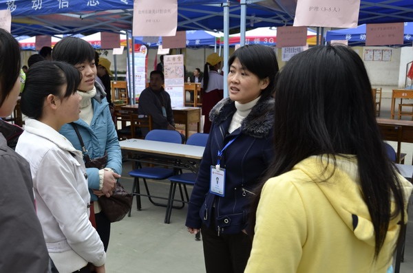 广西中医学院附设中医学校党委罗艺徽副书记对应聘学生进行现场指导