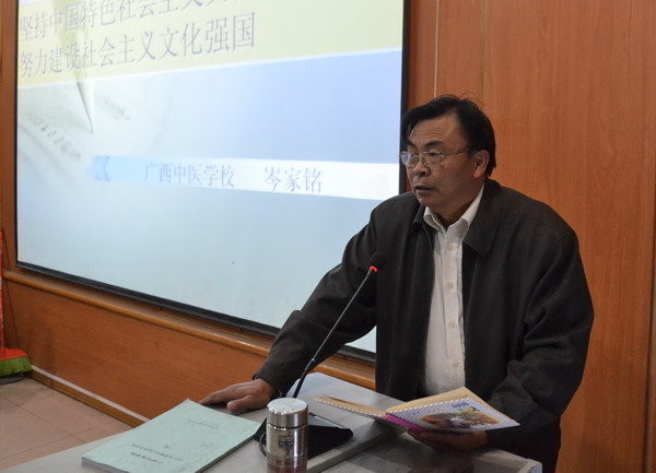 会上,岑家铭书记首先传达了中央十七届六中全会和自治区第十次党代会会议精神,从当前突出矛盾和问题深入阐述了社会主义文化建设的重要性、必要性、紧迫性,为文化改革发展目标而努力奋斗,实现富民强桂新跨越。特别是立足本校实际,加快学校各项工作进展,强化责任感、主动性和创造性。