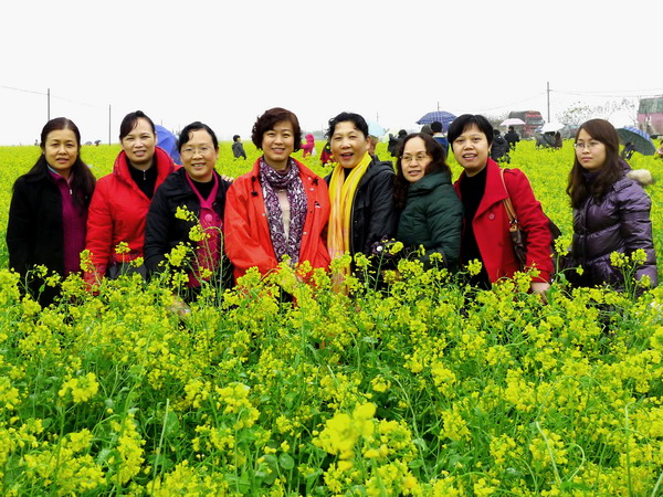 2012 年3月2日,我院女职工们在吴彬院长的带领下,踏着刚刚萌芽的青草,听着春风中鸟语花香的歌谣,看着春天里一幅幅浪漫绚丽的画卷,怀着愉悦的心情来到了上林。全体人员乘船游览了大龙洞水库并参观了油菜花地。在一片金黄色的油菜花地里,全体出行人员度过了美妙充实的一天。这次暖春的“三•八妇女节”活动,不仅使全体出行人员身临自然,体会春意盎然之美,同时促进了教职工们之间的交流。