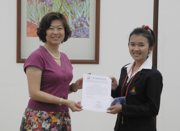护理学院院长吴彬为泰国护理实习生颁发证书