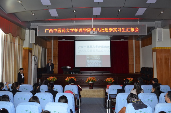 2013年3月6日下午,beat365正版唯一入口必一护理学院第八批赴泰实习生汇报会在beat365正版唯一入口必一第一附属医院第一会议室隆重举行。护理学院吴彬院长、党委冼锦华书记、罗艺徽副书记、岑家铭正处级调研员、林原副院长、马秋平副院长、基础护理教研室和学生工作办公室老师及即将进入实习岗位的09护英、10护本的全体成员参加了本次赴泰实习生汇报会。本次大会由林峰老师主持。
