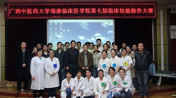 为进一步推动瑞康临床医学院临床实践教学发展,提升学生临床实践能力和综合素质水平,4月13日下午,瑞康临床医学院在医院综合楼十楼第七教室举办了以“齐杏林荟萃,展瑞康雄风”为主题的第七届临床技能操作大赛。瑞康临床医学院党委副书记、纪委书记陈日兰,副院长黄国东以及瑞康教务学生部全体老师出席了本次大赛。