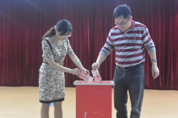 在得知聂兰敏的情况后,第一临床医学院的领导和老师高度重视。5月6日上午,经第一临床医学院教学党总支、团总支和教学部发起,在黄彬书记、黄雪霞主任和医院团委林强书记的带领下,第一临床医学院师生在多功能学术厅举行了为聂兰敏同学爱心捐款的活动,广大师生纷纷慷慨解囊,捐款相助,共有800多名师生捐款,捐款总额7815元,大家都有一个共同的心愿:那就是期待能用爱心帮助聂兰敏同学渡过难关!