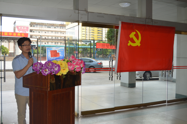 2013年7月1日下午,基础医学院党员入党宣誓暨表彰大会在基础楼中厅举行。学校组织部副处级组织员陈志杰、学校原组织部部长韦国魁、基础医学院党委副书记龙春莉及师生党员代表80余人出席会议。