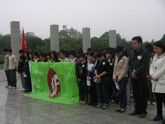 活动在大家凝重有力的团歌歌声中正式开始。在庄重的纪念碑前,全体师生怀着沉痛的心情向烈士默哀,并向革命烈士献上了的花圈。老师的讲话和学生代表的发言再次激起了同学们的拳拳赤子心。同学们誓言发扬“在逆境中崛起,在忧患中奋进,在辉煌中卓越”的精神,并向先烈们郑重承诺将永远践行医学生的誓言:“谨记健康所系,性命相托,除人类之病痛,助健康之完美……”。然后,大家为烈士们送上了亲手制作的小白花。最后,师生们参观广西革命烈士纪念馆,瞻仰革命先烈的先进事迹。
