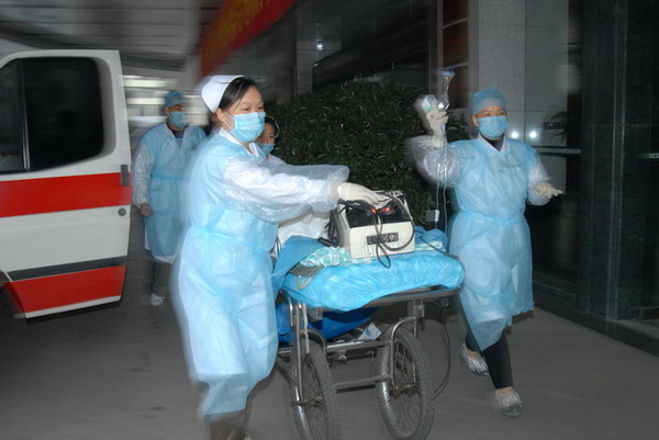 医护人员接救受伤儿童