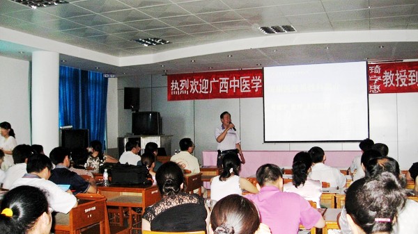 启动仪式后,瑞康医院同宜州市中医院进行了生动有趣的学术交流活动,大家在轻松的氛围中掌握了妇科腔镜的临床应用、男性不孕不育治疗的最新进展,以及了解到了医疗责任侵权法的相关知识等等。各位学员觉得学习知识没有丝毫枯燥,特别是有奖问答,学员们踊跃的举手,让课堂更生了几分活力。在课程结束后,教室传出阵阵的合唱歌声,原来学员们都站起来唱起了歌颂医务人员自己的歌曲,在承担着无数大众的生命责任面前,他们第一次感觉到作为一名医生的自豪,激励着所有在座的人员携手并进把医学事业作为一项生命工程去完成。