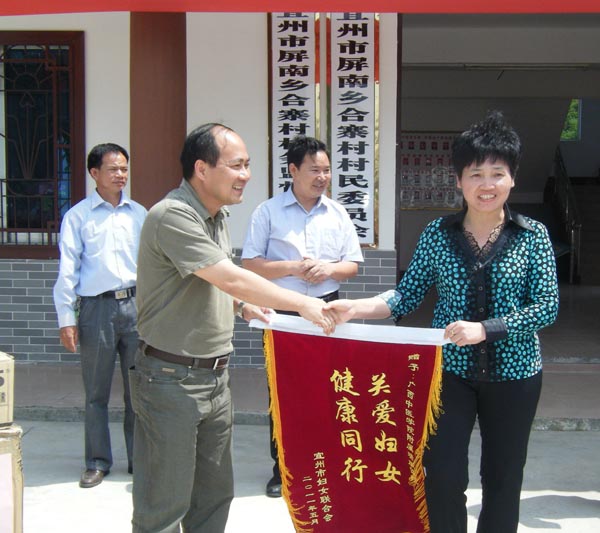 5月23日,自治区妇联主席王革冰、副主席周爱萍率自治区妇联定点帮扶组一行,到河池宜州市开展定点帮扶人口计生工作。瑞康医院作为此次活动的协作单位,积极参与到关爱妇儿健康的公益活动中。活动当天,瑞康医院张春副院长带领医疗服务部、妇科、乳腺科、儿科、男性科、骨科、消化内科、胸心外科、超声科等医院博士专家一行15人奔赴宜州市屏南乡合寨村开展活动。