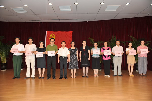 接下来由院领导给“庆七一党的知识竞赛”获奖党总支颁奖,并要求全体党员自觉学习党的基本理论知识和国家政策、法律法规,争做学习的模范。最后,大会在庄严肃穆的国际歌乐曲声中结束。