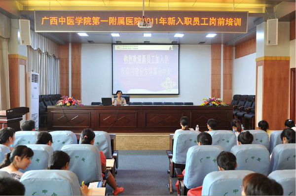 岗前培训在热情洋溢的欢迎辞中拉开了序幕,一附院李敏智书记亲自为新员工上了第一堂课——“医院情况介绍及医院文化建设”,李书记以朴实的语言讲述了我院发展的历史及医院文化建设的情况,让新员工了解了一附院经过几代人艰苦奋斗、顽强拼搏,发展成现在集医疗、教学、科研、保健、预防、康复为一体,综合实力一流的全国知名中医院的创业历程,并殷切希望新员工在改革开放的新形势下发扬传统,再接再厉,勇往直前,共同开创一附院美好的未来。