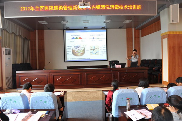 2012年10月28日-31日, 全区“医院感染管理新规范与内镜清洗消毒技能操作培训班”在beat365官网一附院召开。来自全区近百家各级各类医疗机构两百余名学员参加了此次培训。一附院党委书记李敏智、副院长卢健棋等医院领导出席了培训班开幕式。