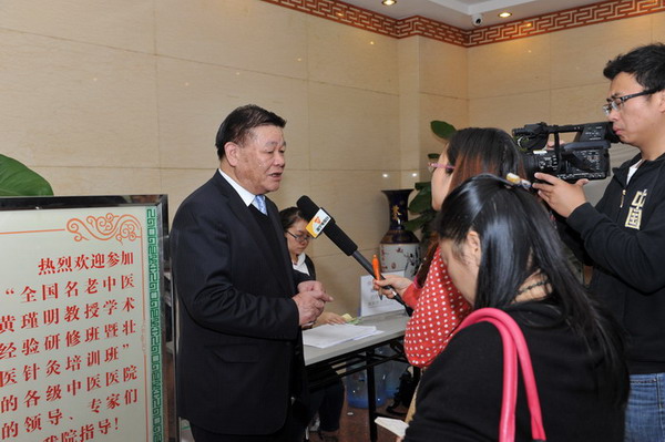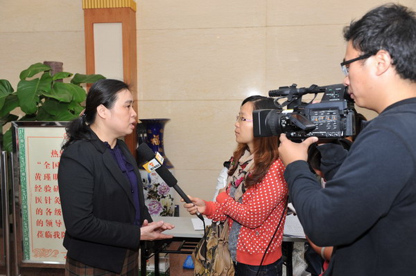 黄瑾明教授主讲的了《加速壮医理论与临床实践相结合是壮医药学术发展的必由之路-------开展壮医针灸理论与临床实践相结合研究的体会》的专题讲座,黄教授将自己从事壮医药挖掘整理、壮医药临床和科研等40余年的经验,及关于加速壮医理论与临床实践相结合的体会及成效倾囊相授,讲座生动有趣、深入浅出,授课内容丰富而精彩,教学互动热烈,学员们深感受益匪浅。12月15日上午学员们到我院壮医科进行了壮医基本技法药线点灸、壮医针刺术、壮医莲花针拔罐逐瘀疗法的临床观摩,培训学习班内容丰富,具有很强的实用性和可操作性,充分体现了壮医诊疗技术的“简、便、验、廉”特色,深受参会代表的欢迎。同时也吸引了区、市电视台、报刊等媒体前来采访。开幕式后,吕琳副局长、黄瑾明教授接受了广西电视台的采访。