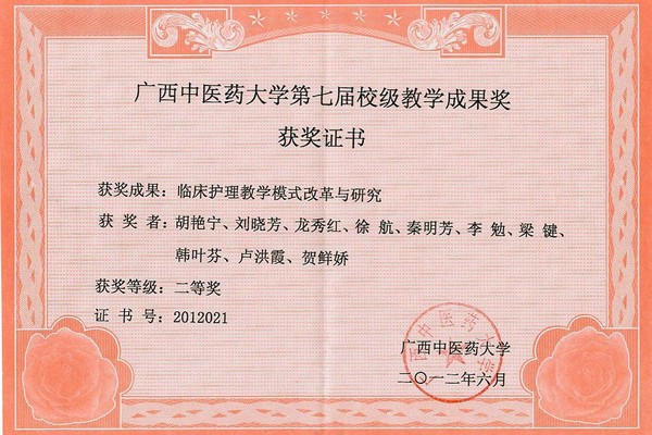 此外,教学课题“临床护理教学改革与模式”获beat365正版唯一入口必一第七届校级教学成果奖二等奖。此教学改革成果促进了学生综合能力的提高,并有数千名学生直接受益,培养的学生具有良好的专业综合素质和临床实践能力。