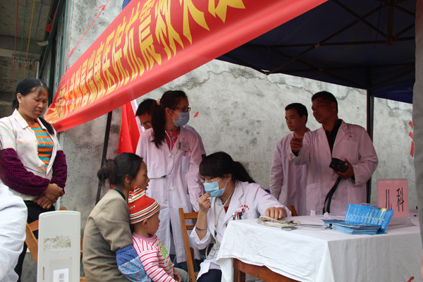 瑞康医院医护志愿者到田东县朔良镇开展抗震救灾义诊活动