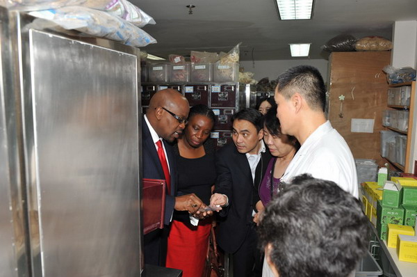 一走进医院大堂Alexzander A.A. Asea教授一行就被古朴而浓郁的中医氛围吸引了。在医院建院70周年布置的历史文化长廊中,了解了一附院源远流长的中医文化历史及新时代翻天覆地的巨大变化,随后客人们参观了中药房及煎药室,对中药房中种类繁多的中药及现代化的煎药设备赞叹不已。美国客人们对中医的针灸及推拿特色疗法相当感兴趣,在钟副院长的引领下分别参观了针灸科及推拿科,详细了解了中医药治疗疾病的特色与优势,并现场观摩专家为患者进行治疗,对中医使用特色疗法治疗面瘫、失眠、腰腿痛等疾病的奇效赞不绝口。